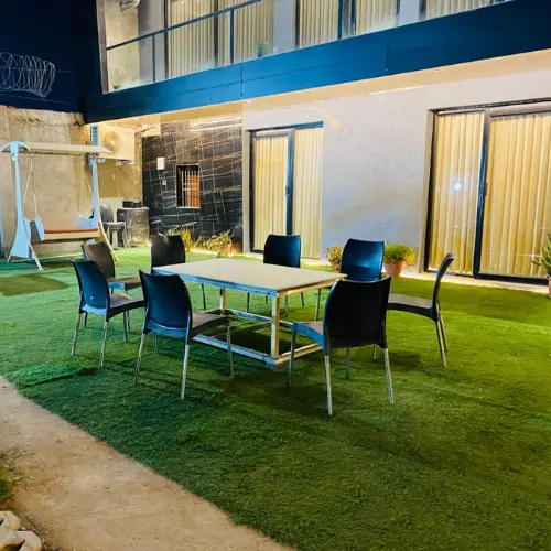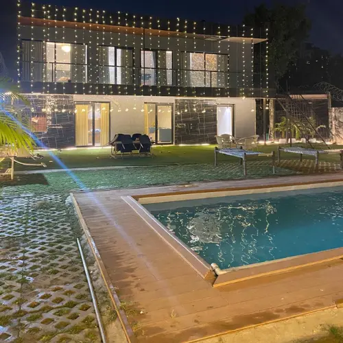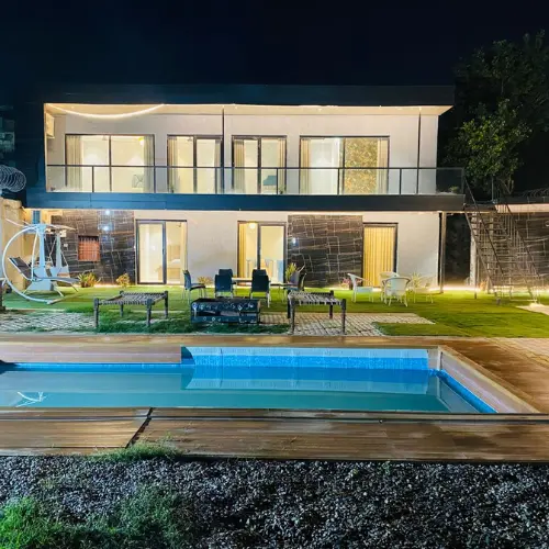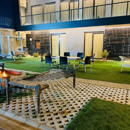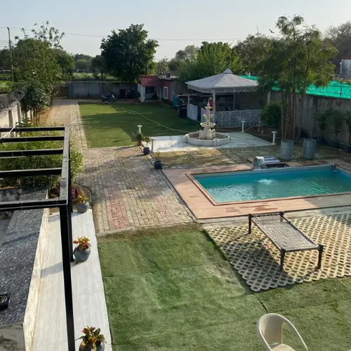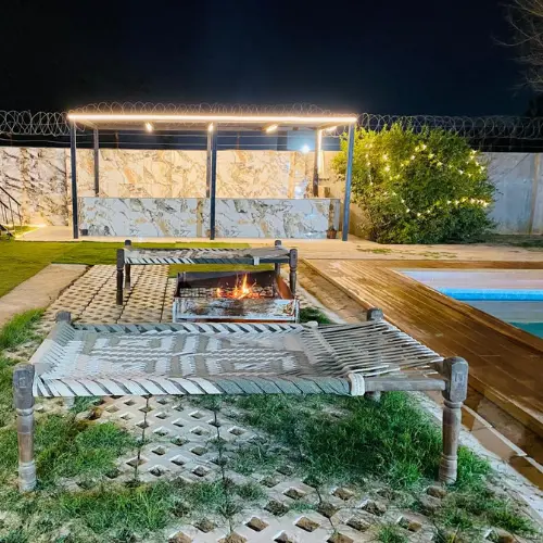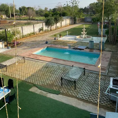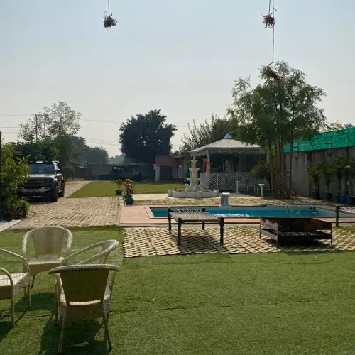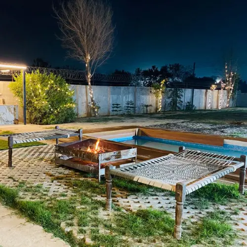 We offer a private garden, swimming pool, open bar and kitchen, spacious rooms and cottages, WiFi, drinking water, free car parking, kitchen equipment, power backup, games, hookah, barbeque setup, and bonfire.